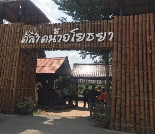先ずは腹ごしらえです!お通し(?)はポピュラーなデザートであるバナナのから揚げが出てきました。その後すぐに足の付いたお盆(これがカントークです)に6種類の料理と付け合わせが乗ってきました。もともとは宮廷料理として格式のあるものらしくカレーとか鳥と鳥皮のから揚げに野菜といったところです。タイ料理というと日本の皆さんは酸っぱくてすごく辛いイメージがあると聞きますがこのカントーク料理はどれも余り辛くなく日本の皆さんも美味しく食べられるのではないでしょうか?料理とライスは食べ放題でお店の人が持って歩いていて無くなると注いでくれました。なかなか通りかからなくても、もちろんお店の人に言えば持ってきてくれるので沢山食べましょう!?今日は(も)カロリーは気にしません・・(笑)