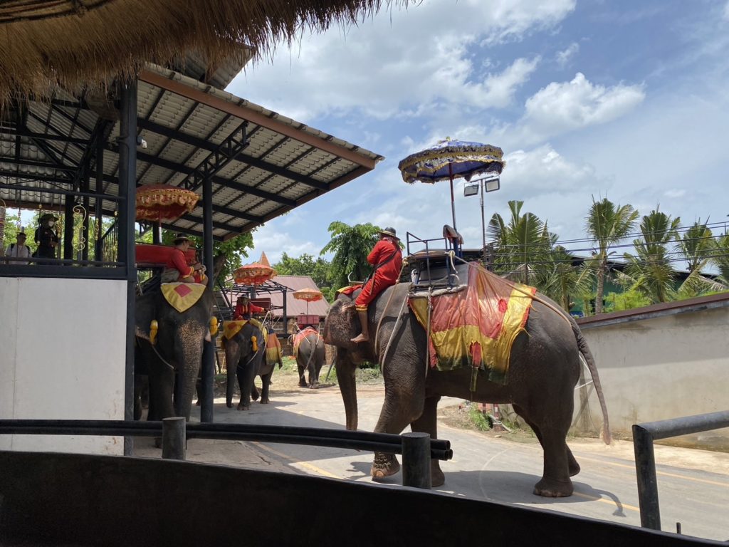 ダムヌンサドゥアック・エレファント・キャンプは様々なエンターテイメント・アクティビティで楽しいひとときを過ごせる観光名所です。ラチャブリーの有名なダムヌンサドゥアック水上マーケットからもほど近く、約3キロの距離です。運河とココナッツ畑に囲まれたこのキャンプでは、象乗り体験や象のショーやその他のアクティビティも楽しむことができます。今日は私が行った象乗り体験をご紹介しますね!