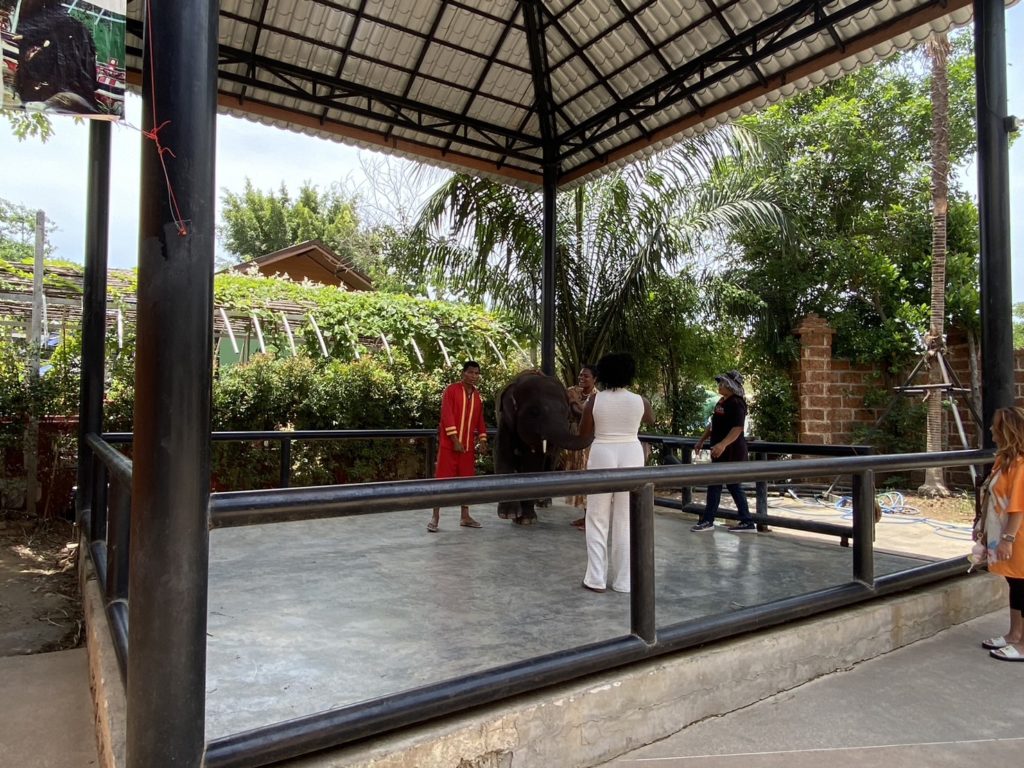 象乗りを終えた後は、象乗り場の近くの赤ちゃん象のショーを観に行きました。100バーツで赤ちゃん象と一緒に写真を撮ることもできます。