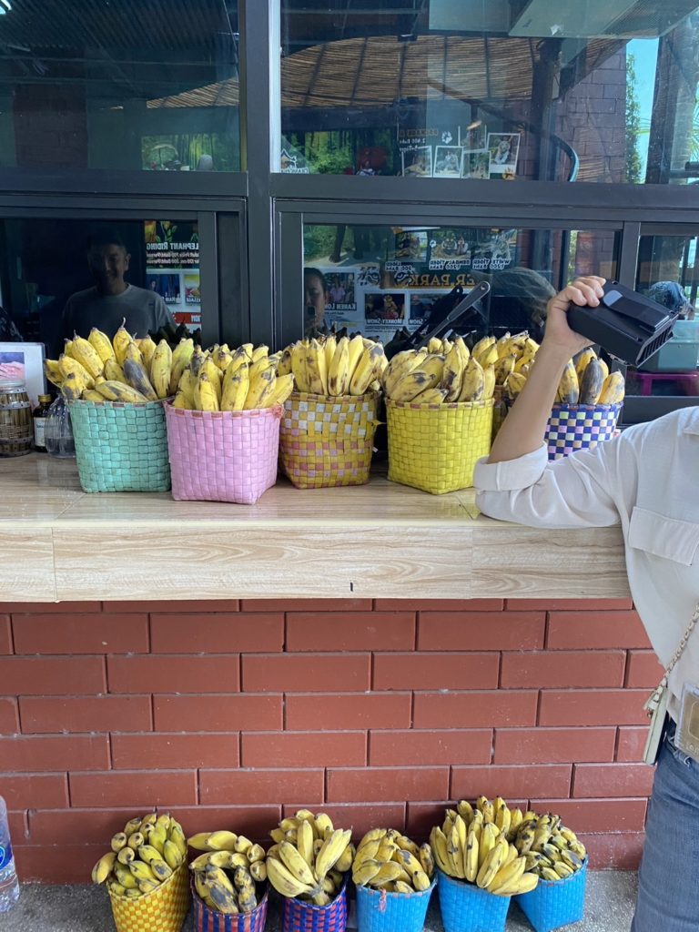 象の餌としてバナナを購入できます。1カゴあたり100バーツ。こちらもかなり高額です。😊 観光地値段ですから仕方ないのかな。。