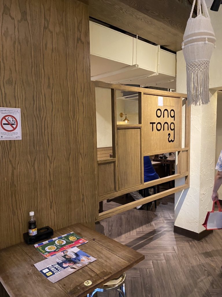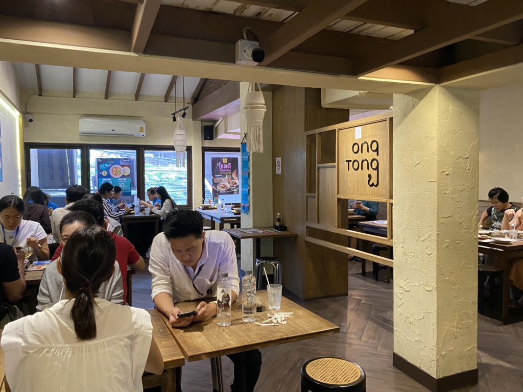 店内に入ると、明るい黄色の装飾が目に入ります。店名の「オントン」は北部の方言で「可愛らしく、陽気な」という意味です。店はエアコン完備で、1階か2階の席を選べます。提供される様々なメニューは、オーナーの祖母が自ら考案したレシピで、チェンマイのタイ北部料理を中心に、チェンマイから直送された食材を使用しています。
