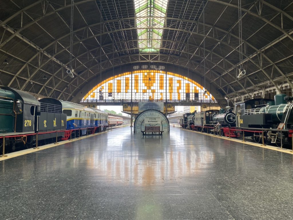 フアランポーン駅(正式にはバンコク鉄道駅)は、バンコクの中心に位置するタイの主要な鉄道駅で、首都バンコクの玄関口として重要な役割を果たしていました。この駅は、タイの鉄道旅行の歴史を物語るシンボル的な存在で、ドイツのフランクフルト駅をモデルにデザインされた半円形の屋根のヨーロッパ風の美しい建築が特徴的です。