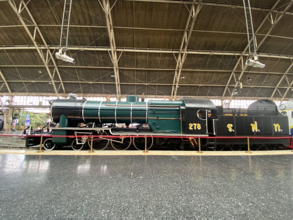 実際の列車を見ることもできるんです。フアランポーン駅の現在はもう使っていないプラットフォームに停車した列車は、まるで昔の時代を再現したような雰囲気が広がっており、鉄道の歴史をよりリアルに感じることができますよ。
